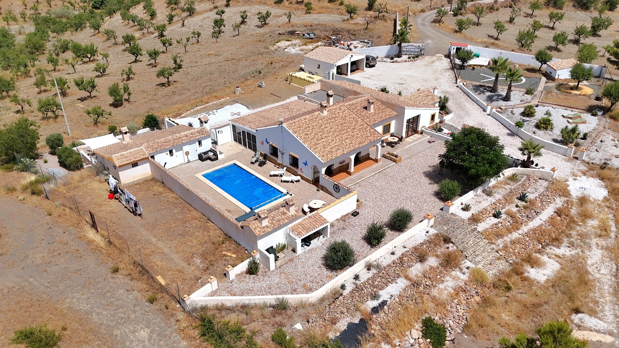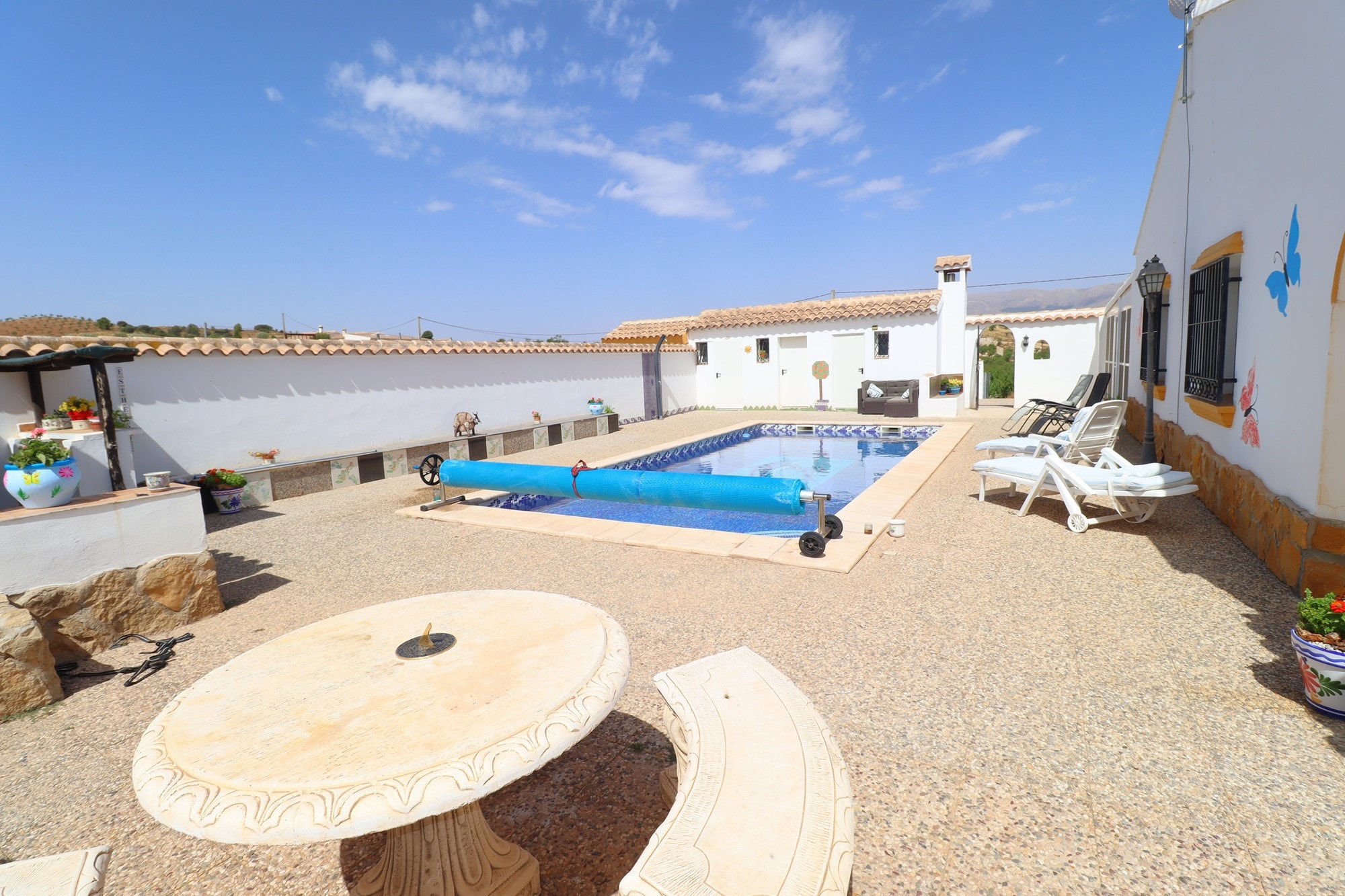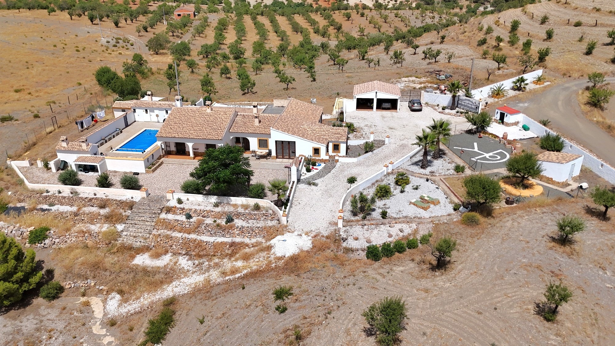 A stunning 3/4 bed 4 bath detached country villa with a swimming pool enclosed by a private courtyard, BBQ, bar and entertaining area, large porch double garage and a separate, fully private self-contained 1 bedroom 1 bathroom casita/apartment. Set in a large plot of over 3 hectares of land, partially fenced, this great property offers stunning views to the surrounding countryside. This property is situated in a rural location, yet not far from the town of Velez Rubio, which is only a 5 minute drive. Velez Rubio offers a wider range of shops, banks, bars, a weekly market, 24h health centre, etc. There is good access to the A92 Murcia-Granada motorway which leads to Granada and the Sierra Nevada ski resort in one direction and the E15/A7 coastal motorway in the other direction, giving easy access to the airports of Almeria, Murcia and Alicante. The coastal resorts of Aguilas (Murcia), San Juan de Los Terreros, Vera and Mojacar (Almeria) are within less than an hour drive. The historic city of Lorca with its fantastic shopping centre is 30 minutes’ drive away.