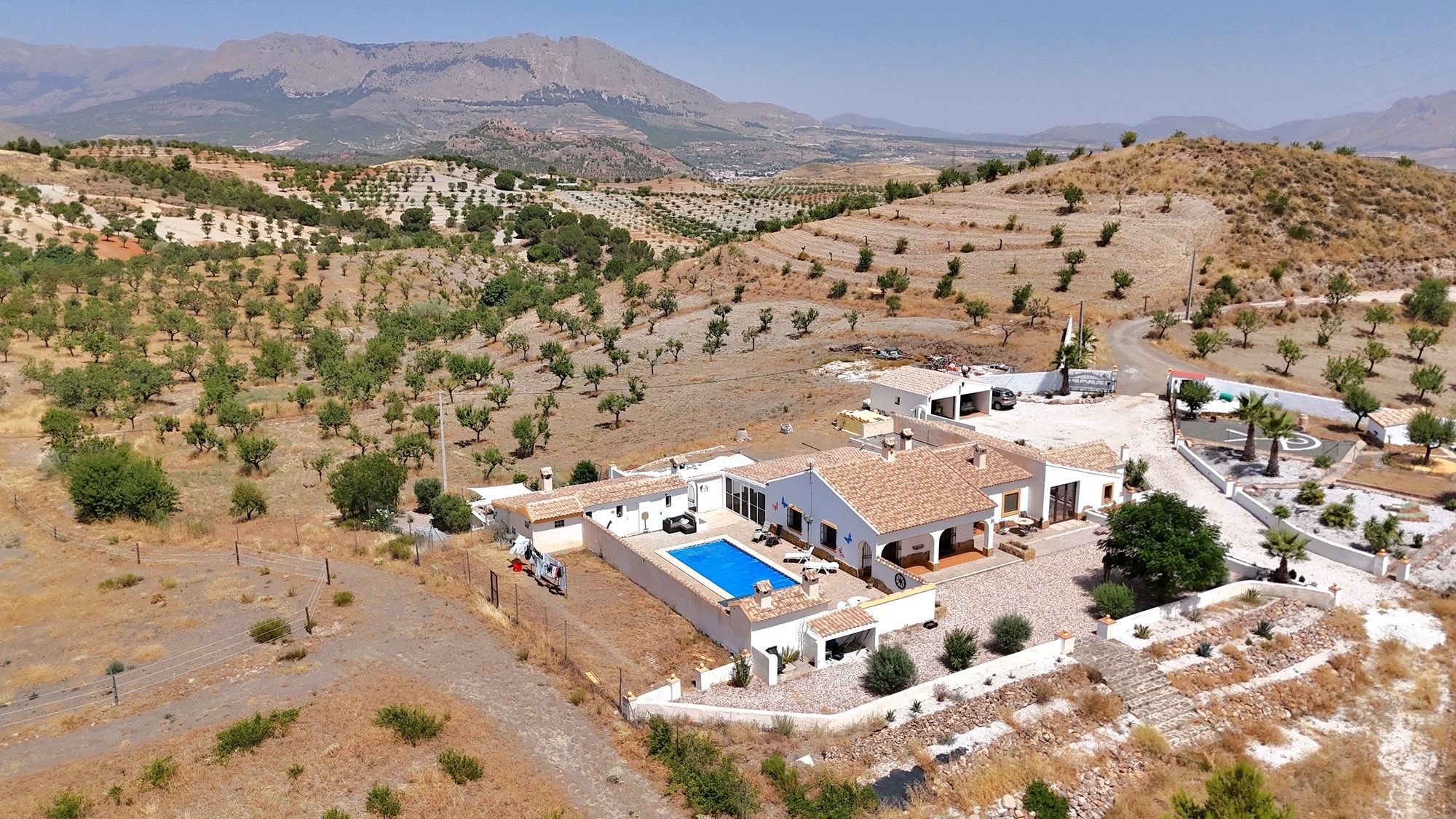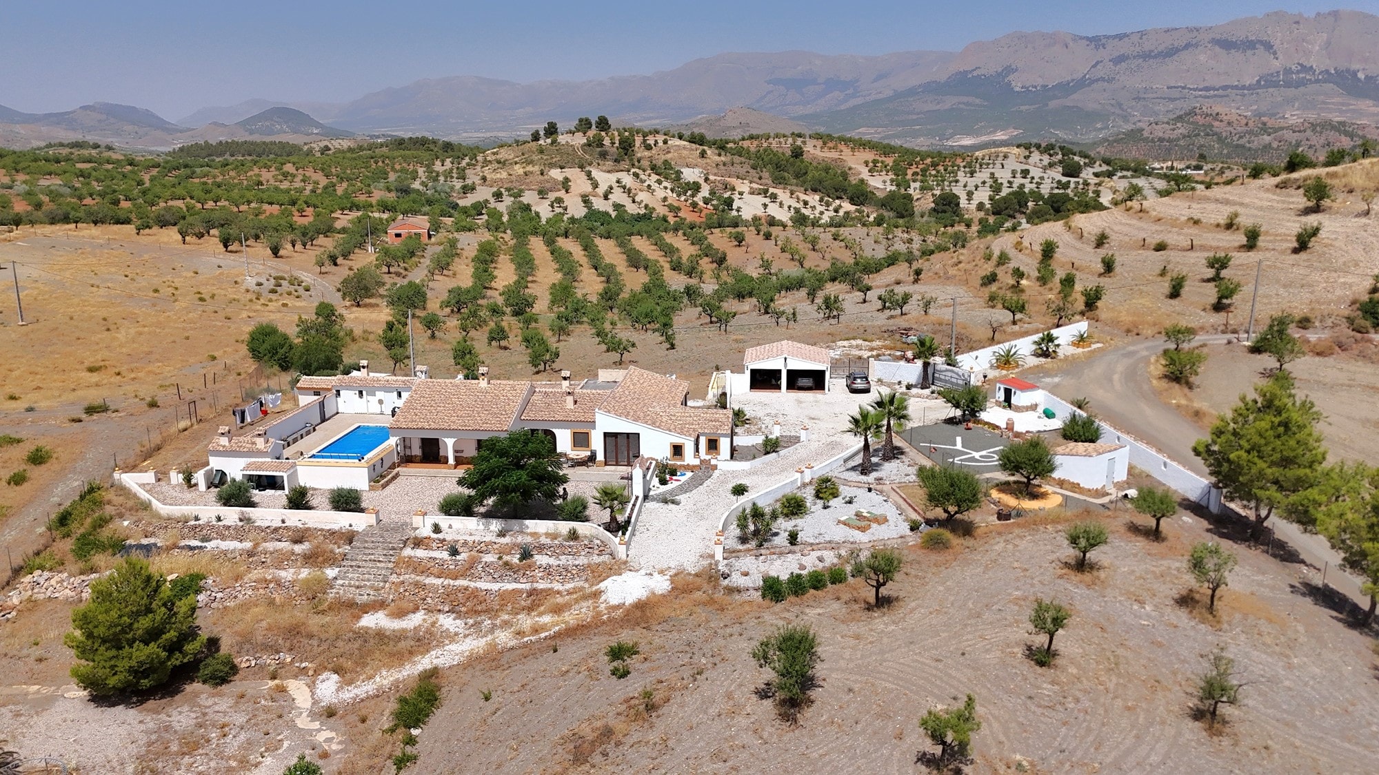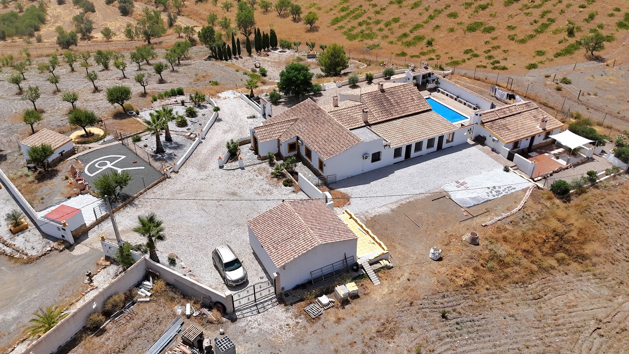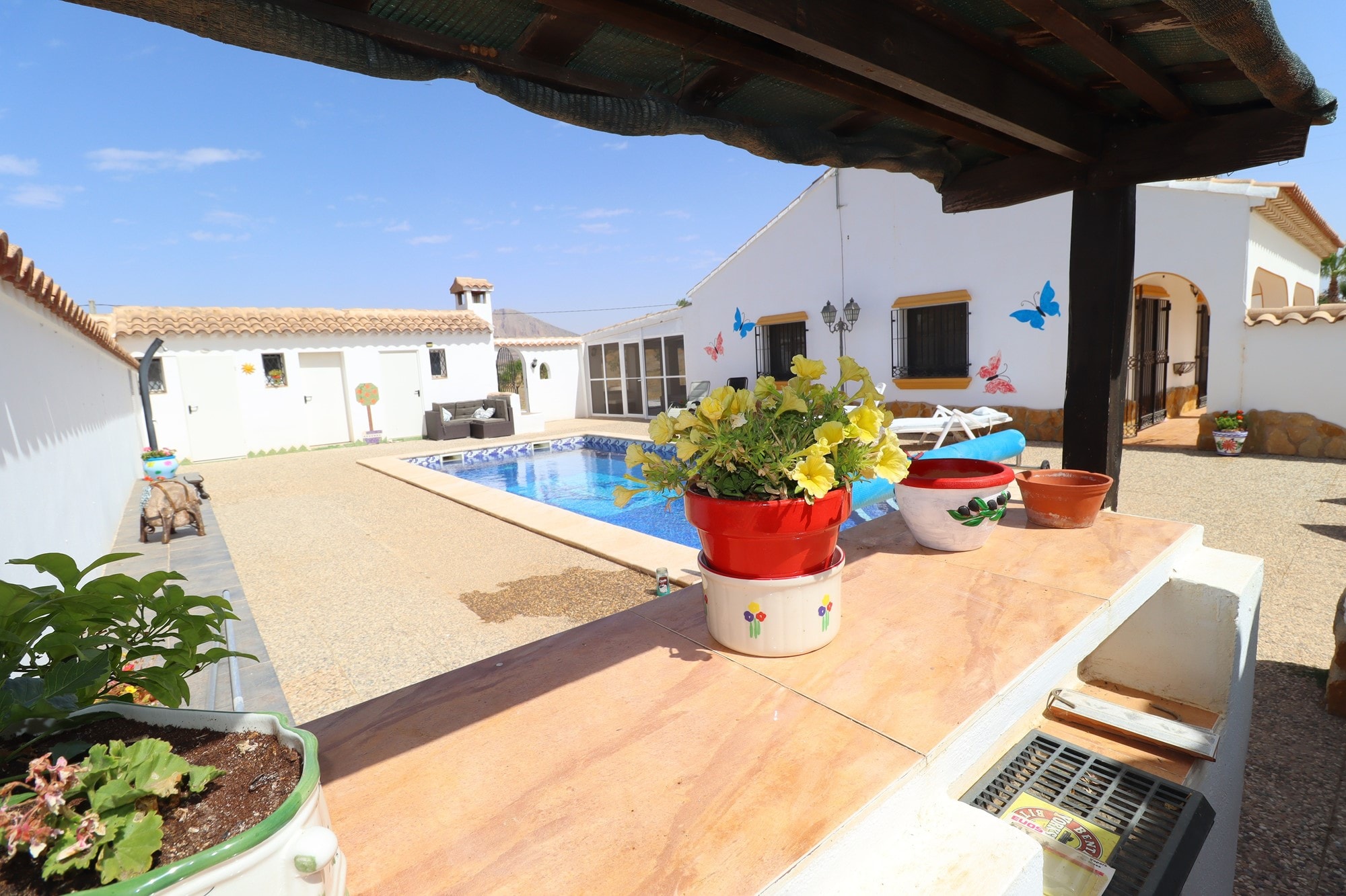 A stunning 3/4 bed 4 bath detached country villa with a swimming pool enclosed by a private courtyard, BBQ, bar and entertaining area, large porch double garage and a separate, fully private self-contained 1 bedroom 1 bathroom casita/apartment. Set in a large plot of over 3 hectares of land, partially fenced, this great property offers stunning views to the surrounding countryside. This property is situated in a rural location, yet not far from the town of Velez Rubio, which is only a 5 minute drive. Velez Rubio offers a wider range of shops, banks, bars, a weekly market, 24h health centre, etc. There is good access to the A92 Murcia-Granada motorway which leads to Granada and the Sierra Nevada ski resort in one direction and the E15/A7 coastal motorway in the other direction, giving easy access to the airports of Almeria, Murcia and Alicante. The coastal resorts of Aguilas (Murcia), San Juan de Los Terreros, Vera and Mojacar (Almeria) are within less than an hour drive. The historic city of Lorca with its fantastic shopping centre is 30 minutes’ drive away.
