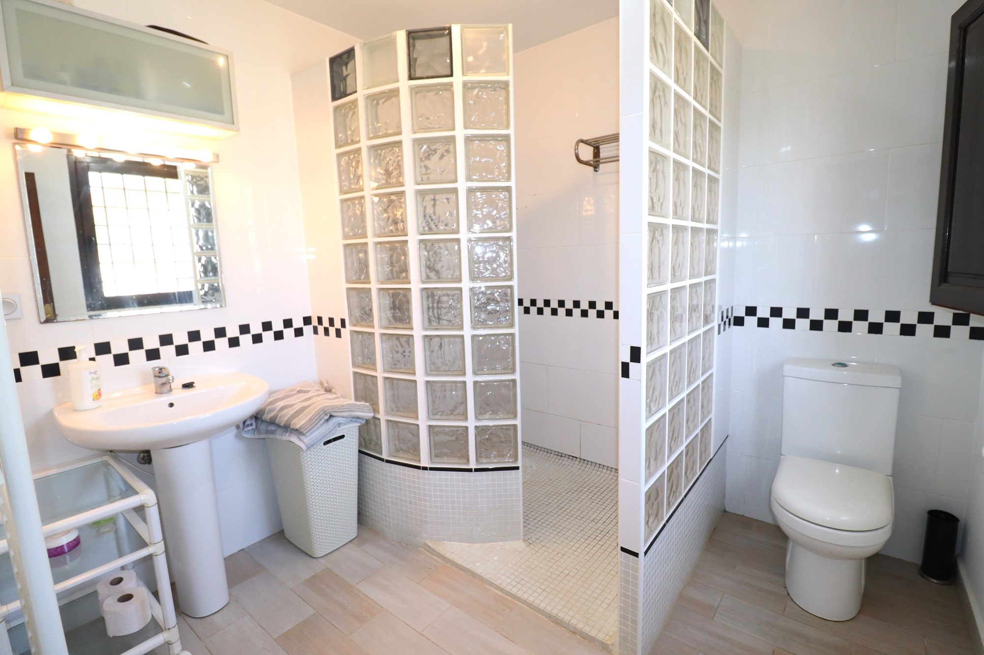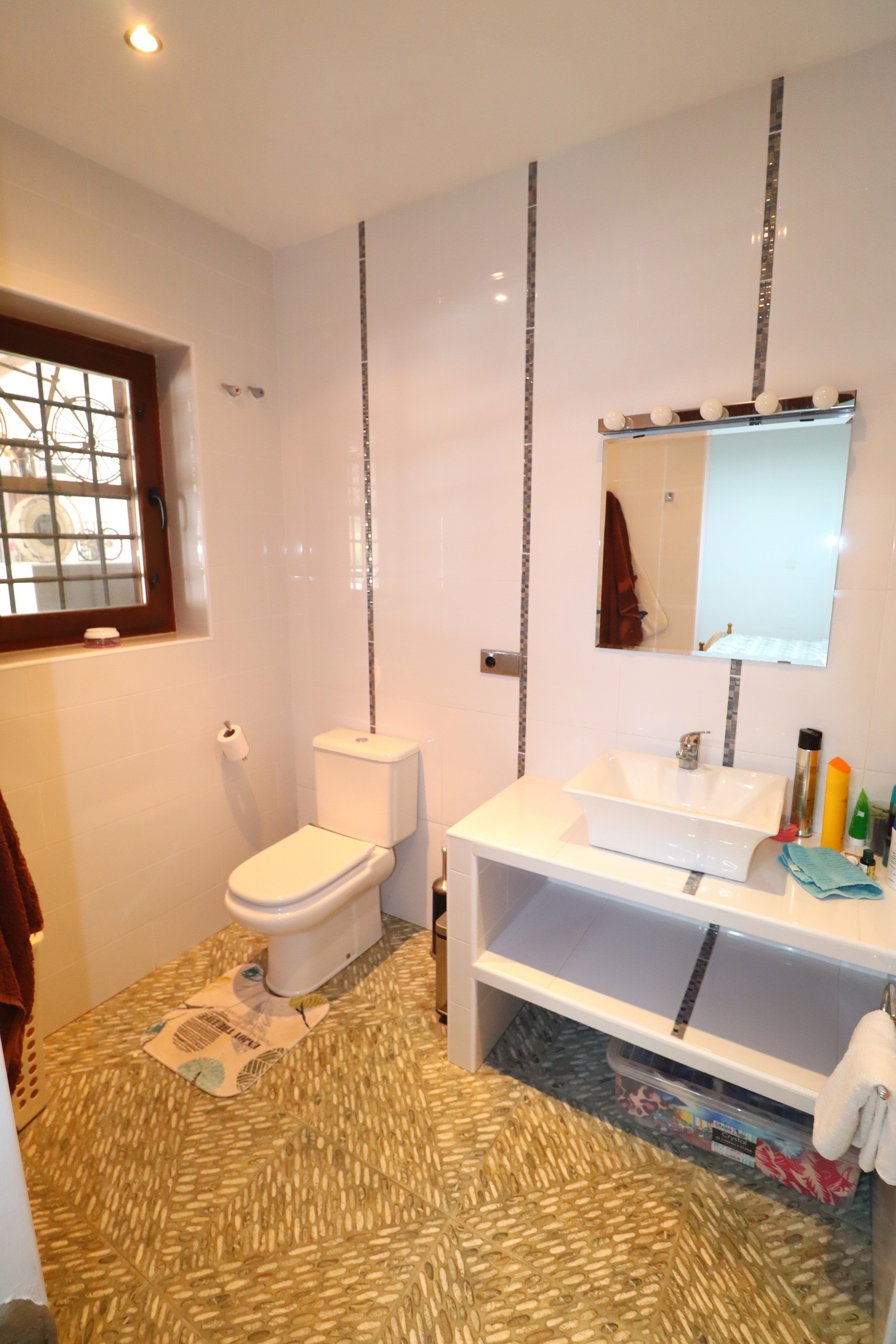 Outside and to the side of the villa it is a very large walled and terraced courtyard keeping full privacy and containing the swimming pool, a BBQ with pizza oven and a bar area. Next to this courtyard we also find the pool room and the boiler room which contains the central heating equipment. From the courtyard there is also access to the rear of the self-contained apartment.