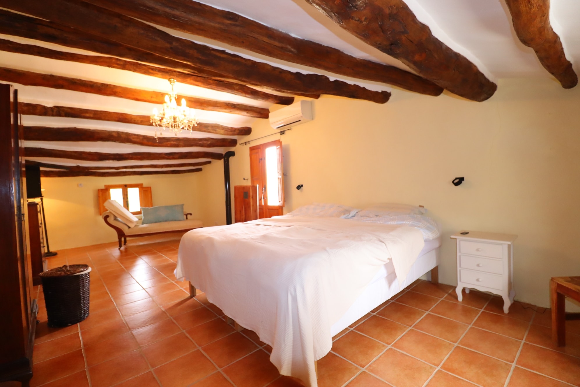 Beautiful Andalucian 2 storey cortijo with 4 bedrooms and 3 bathrooms. It has been lovingly restored keeping the traditional features such as exposed wooden beams throughout the houes and original anforas (tinajas), antique wooden floor in the lounge. Immaculately presented, it also features a large entertaining/summer room with bar area, private walled courtyard (the hot tub seen in pictures is not included) and store room; BBQ, pergola, car port, garden shed, garden area with artificial grass around a 6 x 4 metres swimming pool, beautiful landscaped and easily maintained gardens with mature trees, shrubs and plants to the rear of the property insterspersed with gravel and seating areas and a terrace with a gazebo, L-shape sofa and a water feature. Amazing views to the surrounding mountains and countryside. Set in around 4,4 hectares of land with approximately 60 mature olive trees. Situated right on the border between Lorca (Murcia Region) and Velez-Blanco (Almeria province) but officially registered under Lorca (Murcia region), with excellent access off a tarmac road, and only a short drive (10 mins) from the historical and market town of Velez Rubio, with a wider range of shops, banks, bars, a weekly market, 24h health centre, etc. The property enjoys absolute full privacy.