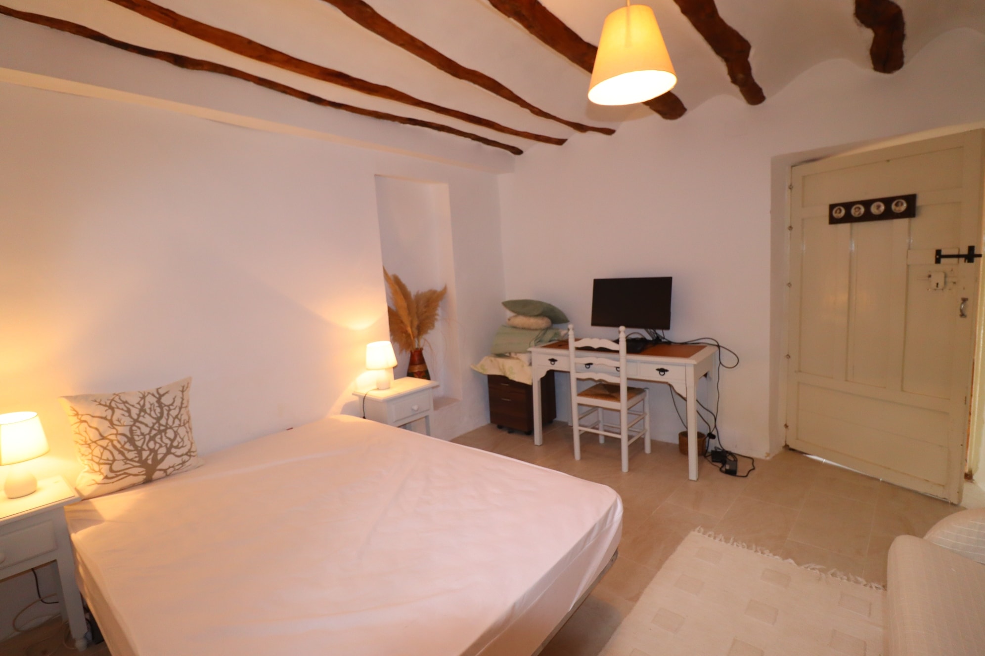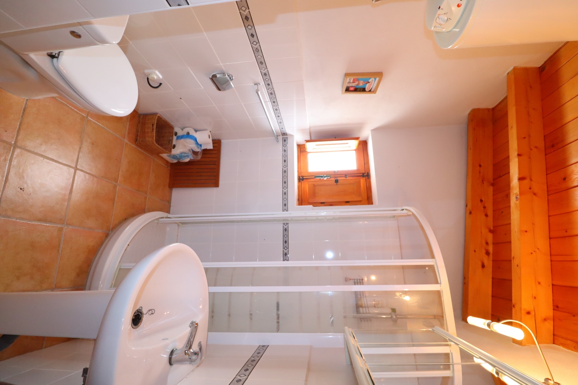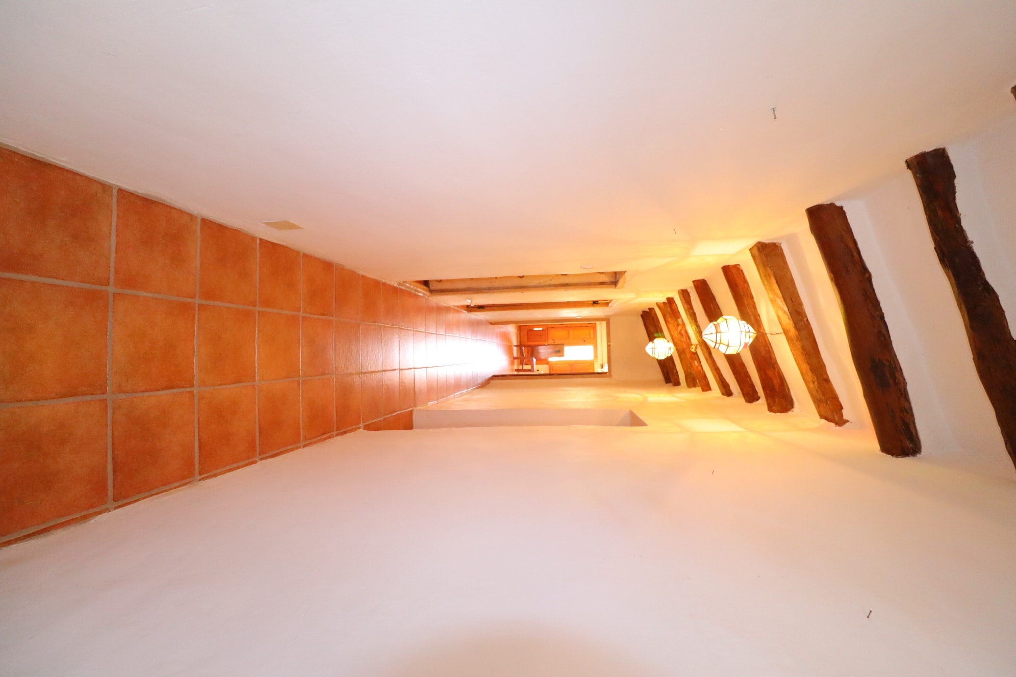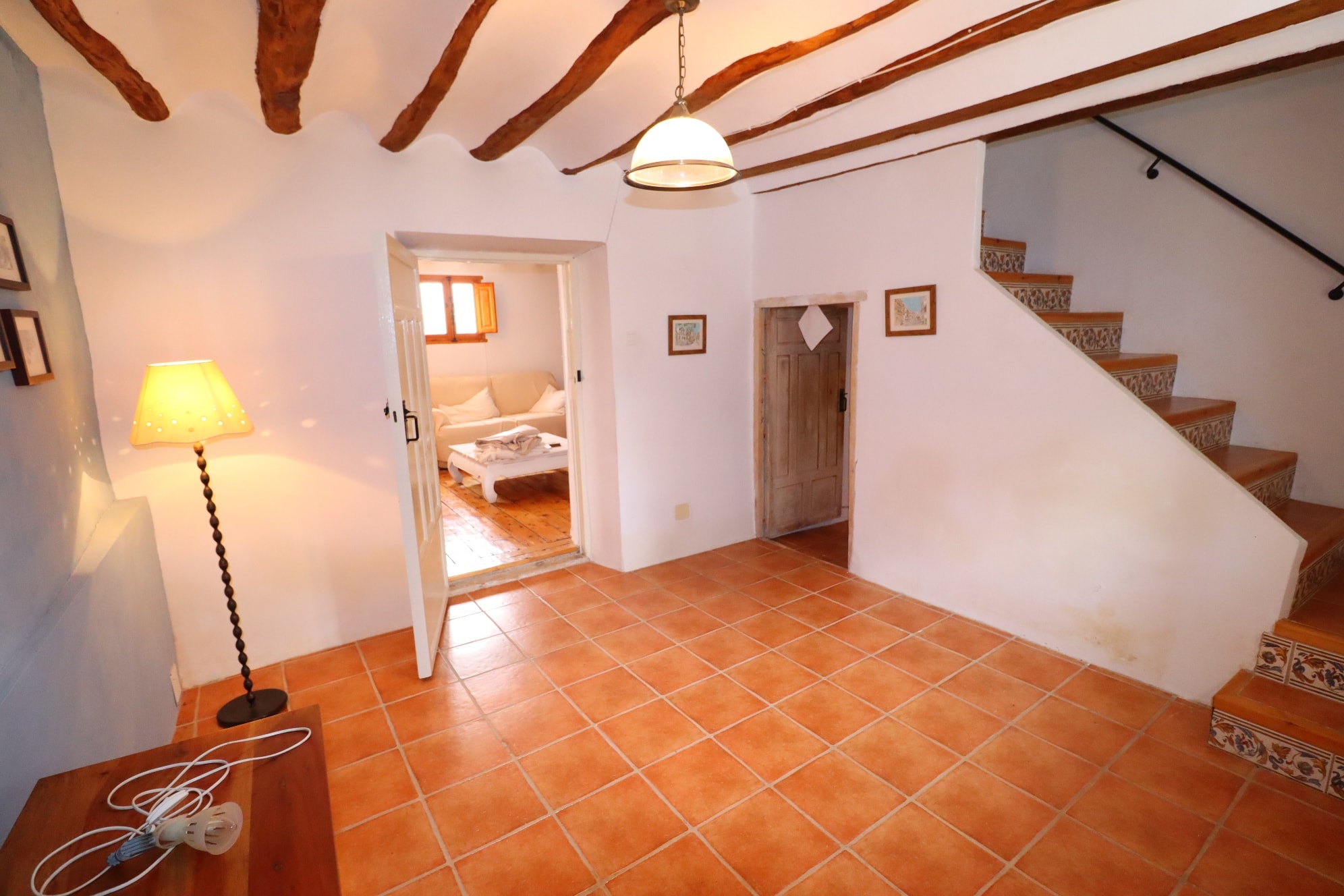 Front door leading into the beautiful Andalucian country style kitchen with adjacent breakfast room. The kitchen is fitted with granite worktops, gas range cooker, fridge-freezer, dishwasher, microwave. A step up from the kitchen is the kitchen table area /breakfast room with 5 old tinajas/anforas embedded into the raised work surface. Off the breakfast area is a shower room. Also from the breakfast area, a short hallway leads to the dining room with staircase up to the upper floor. A door from the dining room opens into the spacious and cosy lounge with antique wooden floor, open fireplace and inset wood burning stove. There is a door from the lounge which leads into the lobby/hall with double main doors out to the frontage of the property. Another door opposite the hall door leading into bedroom one, double. At the end of the lounge a door, after a couple of steps up, leads to a bright and spacious summer/entertainment room with bar area and wood burning stove. Near the bar area is a small room with the boiler for the gas central heating system. Double patio doors from the summer room open to a private enclosed patio (the hot tub seen in the pictures is not included). This walled courtyard is also accessed from the the front and rear of the home. This beautiful patio resembles a typical Andalucian patio with decorative tiles in the wall, wall plates, raised flower pots, a water feature and a tiled bench seating around the hot tub. A door from the patio leads into a good size store room.