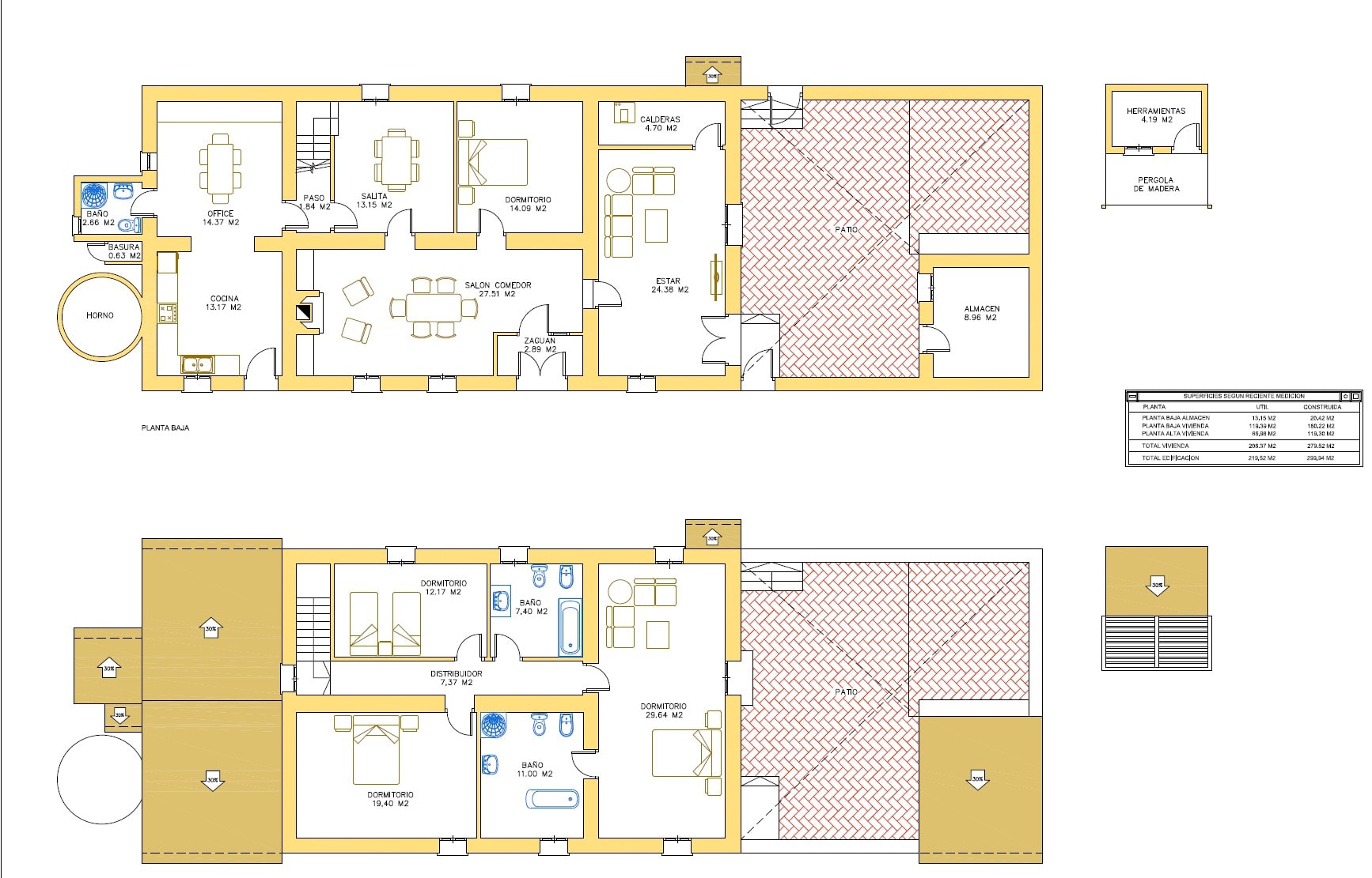 Total built area: 300 m2 plus swimming pool (32 m2).