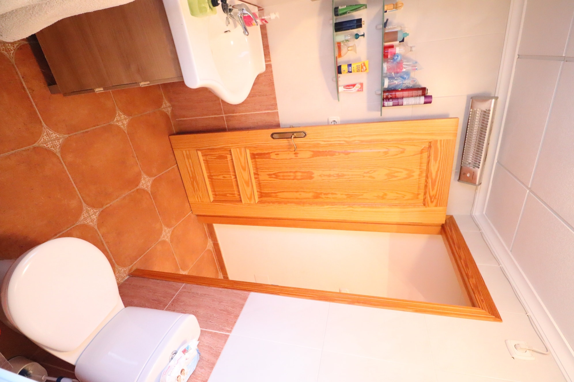 Next to the main entrance door there is a large store room used also as a utility and boiler room.