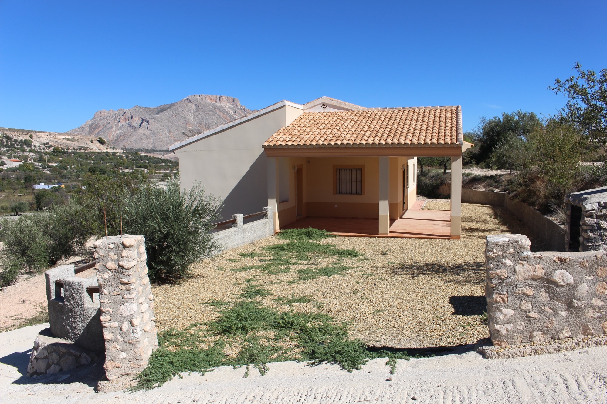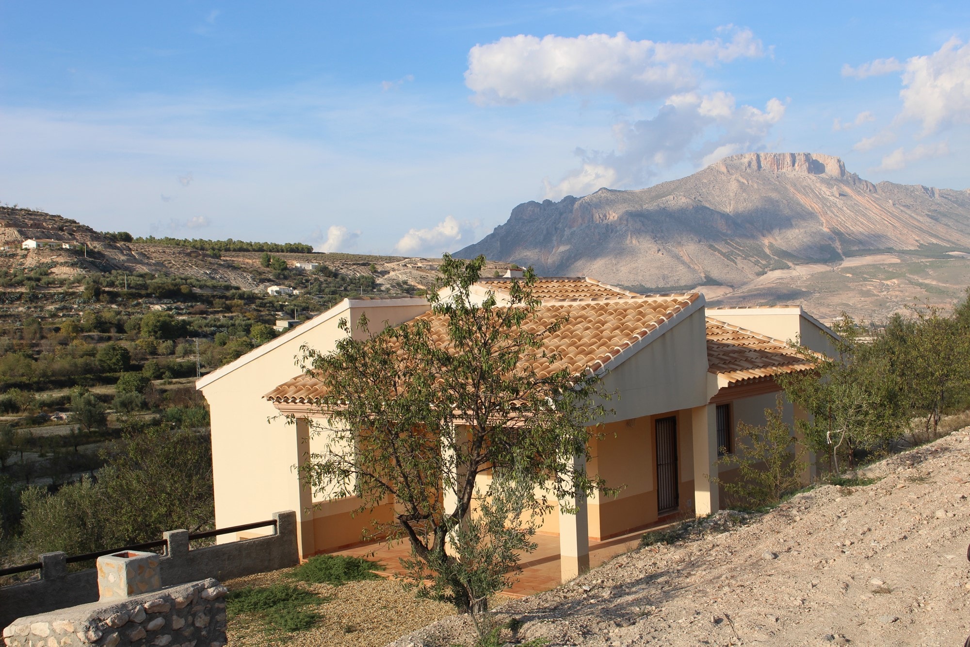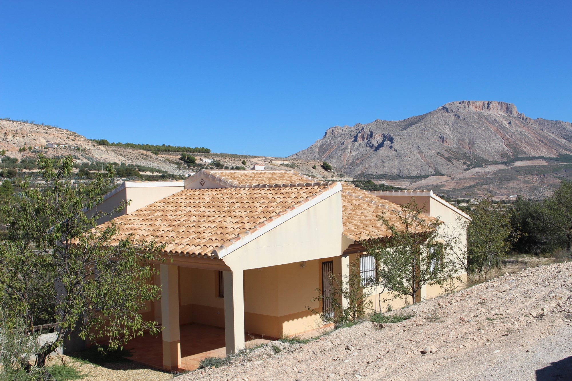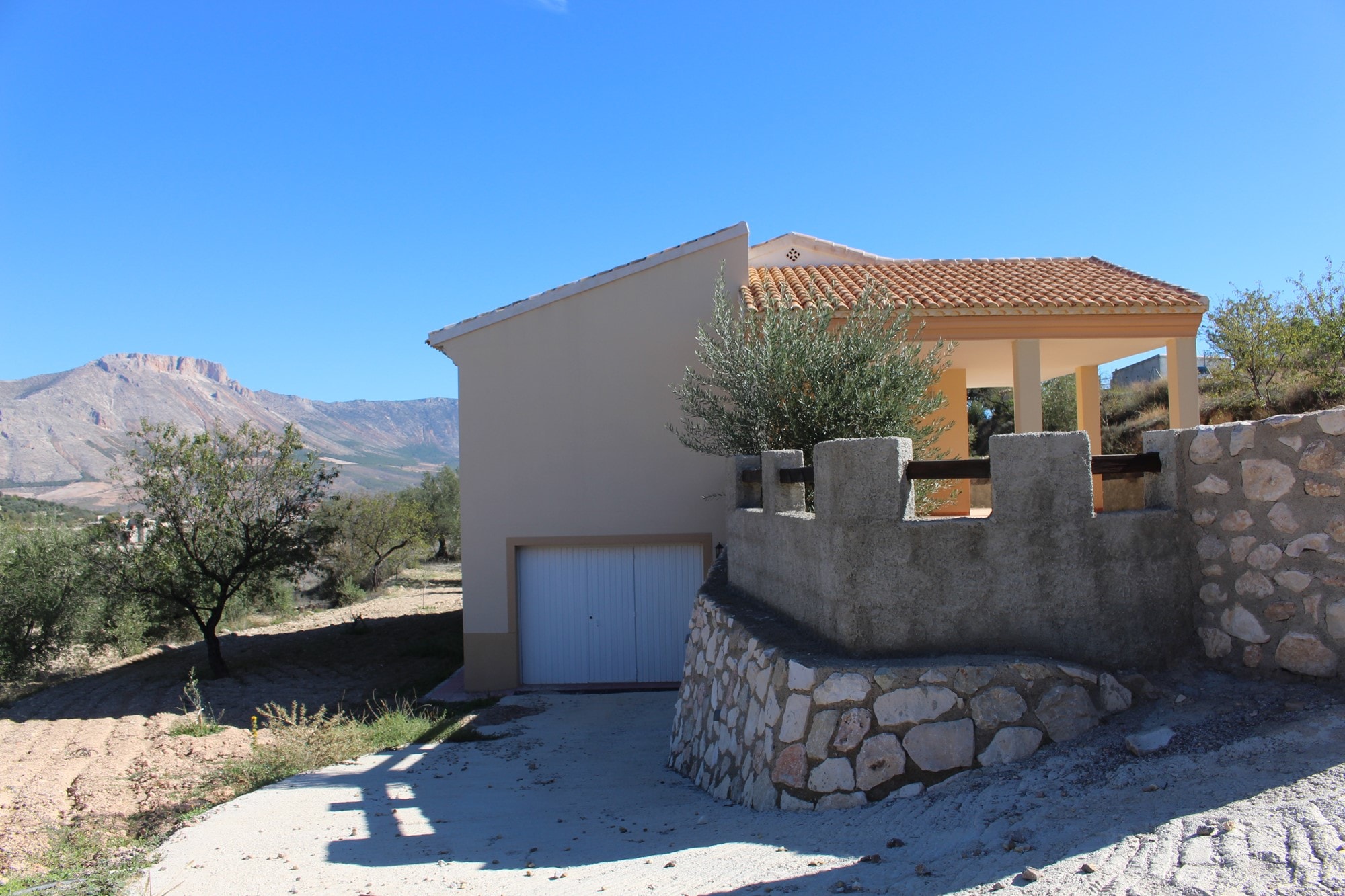 Detached 3 bed – 2 bath country villa built on two levels with integral garage on the lower level, + BBQ + access to irrigation water + large water storage + its own well fully registered with the authorities. Set on a plot of 4,358 m2, with truly stunning views towards the hillside of La Muela, and situated in a picturesque setting within 5 minutes drive from both, the beautiful town of Velez-Blanco and the larger town of Velez-Rubio with plenty of amenities, 35 minutes from the historical City of Lorca with its large shopping mall and 60 minutes from the beaches of Águilas.