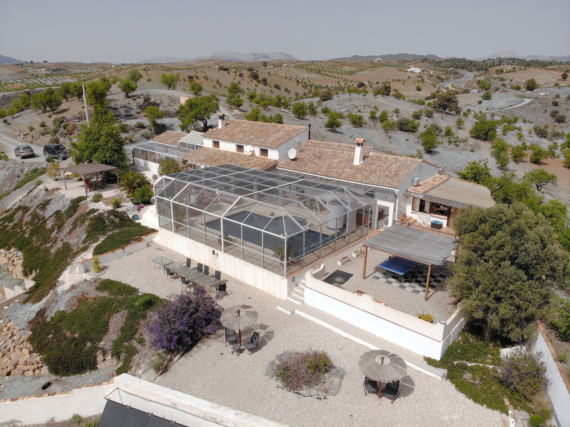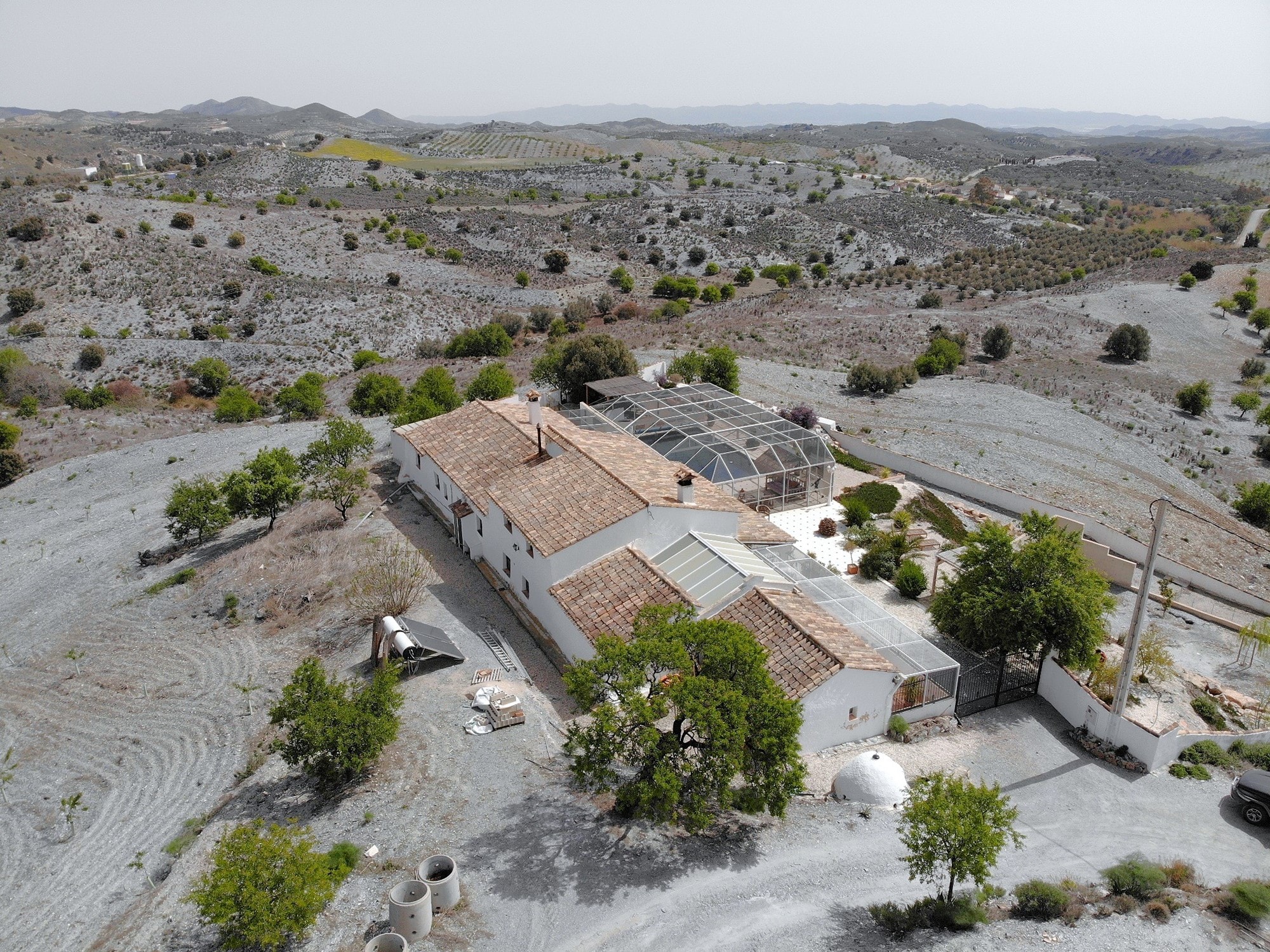 6 bed 6 bath in total offering 2 houses and 1 apartment, with one of the houses and the apartment being self-catering. Large fly-free terraced area enclosing a 10m x 5m swimming pool, a jacuzzi, and sitting and dining areas. Also a fully enclosed games room and other terraced areas. Surrounded by 20,842 m2 of natural land. Situated on an elevated position with superb and uninterrupted views across the rolling countryside. It enjoys full privacy. Located just 2 minutes drive from the A-92 Murcia-Granada mortorway and 10 mins drive from the market towns of Puerto Lumbreras (Murcia Region) on one side & Velez Rubio (Almeria) on the opposite direction. Access is excellent being nearly all by tarmac road with the last 200 metres by a track in good condition.